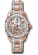 34mm 18K Everose gold case, screw-down crown, bezel set with 32 diamonds, scratch-resistant sapphire crystal with cyclops lens over the date, goldust dream dial, Roman numerals with 11 diamonds set on VI , Rolex calibre 2235 automatic movement, 18K Everose gold Pearlmaster bracelet with rounded five-piece links, concealed folding Crownclasp...