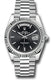40mm platinum case, screw-down back, screw-down crown with twinlock double waterproofness system, fluted bezel, scratch-resistant sapphire crystal with cyclops lens over the date, bright black dial, 10 baguette-cut hour markers, Rolex calibre 3255 perpetual self-winding movement with centre hour, minute and seconds hands, instantaneous day and date in apertures, unrestricted...