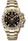 40mm 18K yellow gold case, screw-down back, screw-down crown and push buttons with Triplock triple waterproofness, fixed 18K yellow gold bezel with engraved tachymetric scale, scratch-resistant sapphire crystal, black dial, champagne subdials, index hour markers, Rolex calibre 4130 self-winding movement with chronograph central second hand, 30-minute counter at 3 o'clock,...