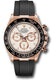 40mm 18K Everose gold case, screw-down Everose back, screw-down crown and push buttons with Triplock triple waterproofness, black monobloc Cerachrom bezel with engraved tachymetric scale, scratch-resistant double anti-reflective sapphire crystal, meteorite dial, black subdials, index hour markers, Rolex calibre 4130 perpetual self-winding movement with chronograph central second hand, 30-minute counter...