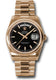 36mm 18K pink gold case, domed bezel, pink champagne dial, diamond hour markers, and Oyster bracelet.