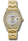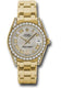 34mm 18K yellow gold case, end pieces set with 28 diamonds, screw-down crown, bezel set with 34 diamonds, scratch-resistant sapphire crystal with cyclops lens over the date, white mother-of-pearl dial, Roman numerals, Rolex calibre 2235 automatic movement, 18K yellow gold Pearlmaster bracelet with rounded five-piece links, concealed folding Crownclasp buckle....
