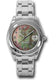 34mm 18K white gold case, domed bezel, Goldust Dream mother of pearl dial, diamond hour markers, and Oyster 17mm bracelet.