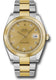 41mm Yellow Rolesor case with 904L steel monobloc middle case, screw-down steel back, 18K yellow gold screw-down crown, 18K yellow gold smooth bezel, scratch-resistant double anti-reflective sapphire crystal with cyclops lens over the date, champagne dial, diamond hour markers, Rolex calibre 3235 perpetual self-winding movement with date at 3 o'clock...