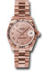 31mm 18K pink gold case, domed bezel, mother of pearl diamond Roman VI dial, Roman numerals with 11 diamonds set on VI, and President bracelet.
