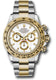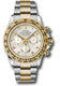 40mm Yellow Rolesor case with 904L steel monobloc middle case, screw-down steel back, screw-down crown and push buttons with Triplock triple waterproofness, fixed 18K yellow gold bezel with engraved tachymetric scale, scratch-resistant sapphire crystal, mother of pearl dial, diamond hour markers, Rolex calibre 4130 self-winding movement with chronograph central second...